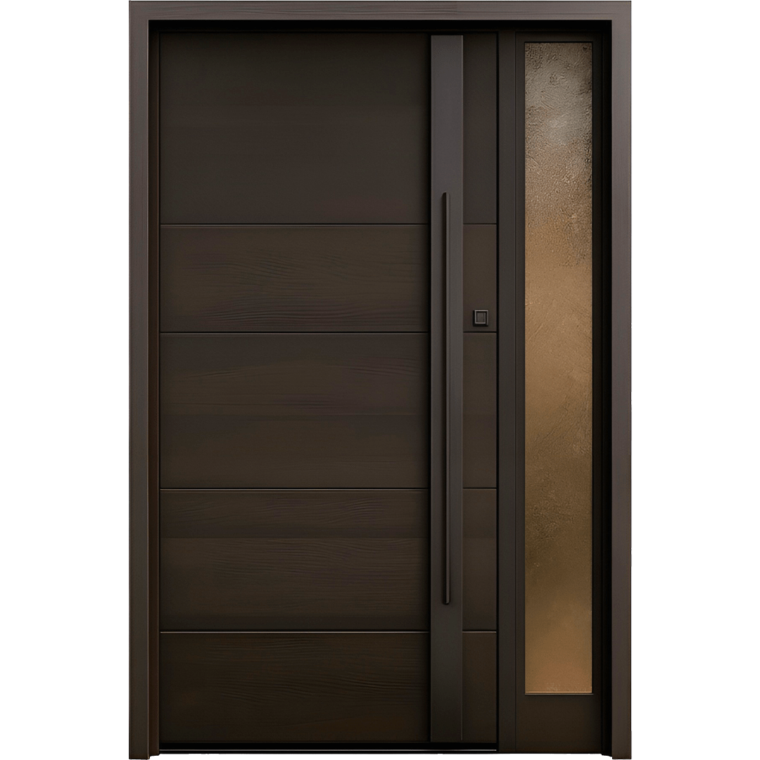 Uși metalice de exterior, placate cu furnir natural Baltic Naval, realizate la comandă, în funcție de dimensiunile și cerințele proiectului.
