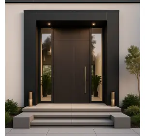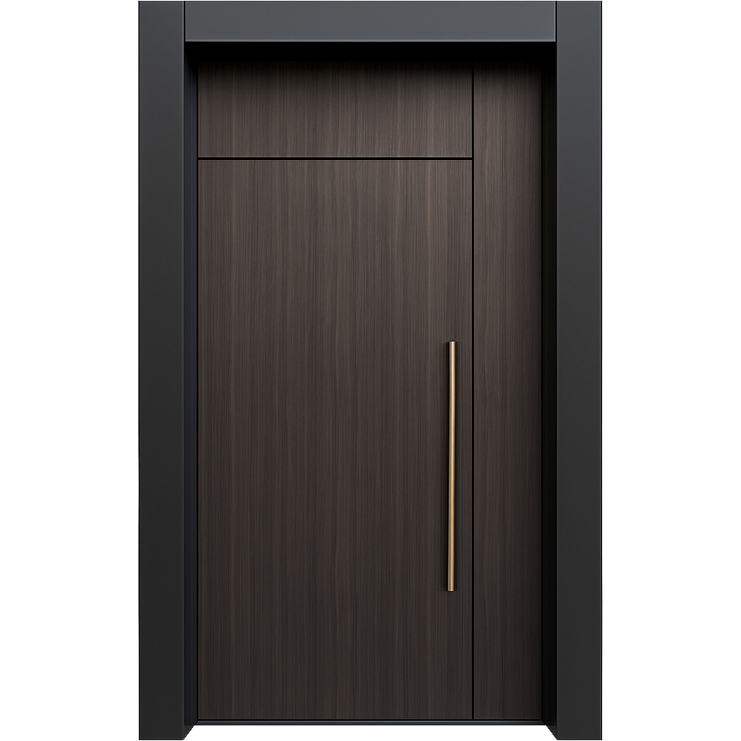 Uși metalice de exterior, placate cu furnir natural Baltic Naval, realizate la comandă, în funcție de dimensiunile și cerințele proiectului.