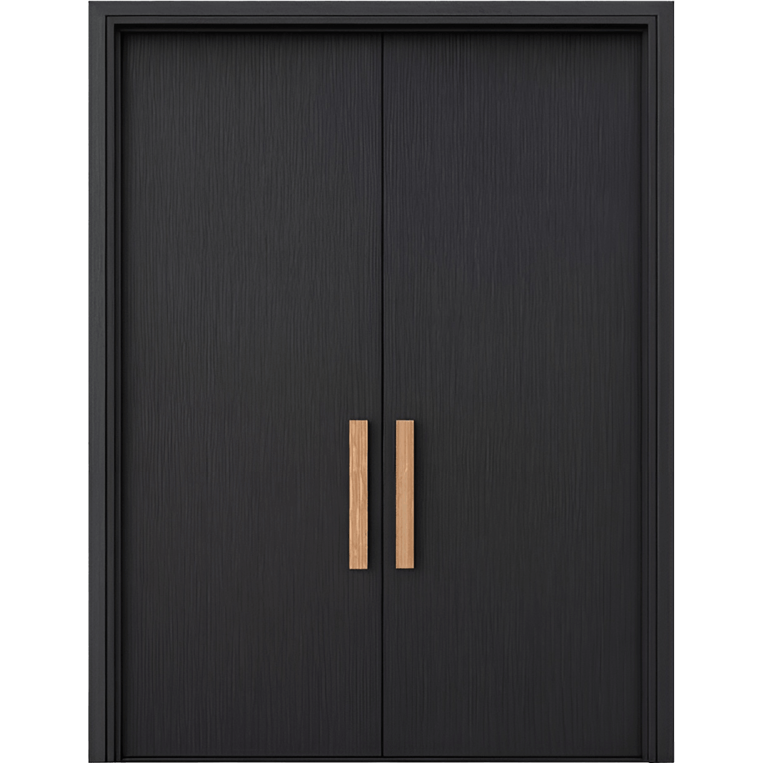 Uși metalice de exterior, placate cu furnir natural Baltic Naval, realizate la comandă, în funcție de dimensiunile și cerințele proiectului.