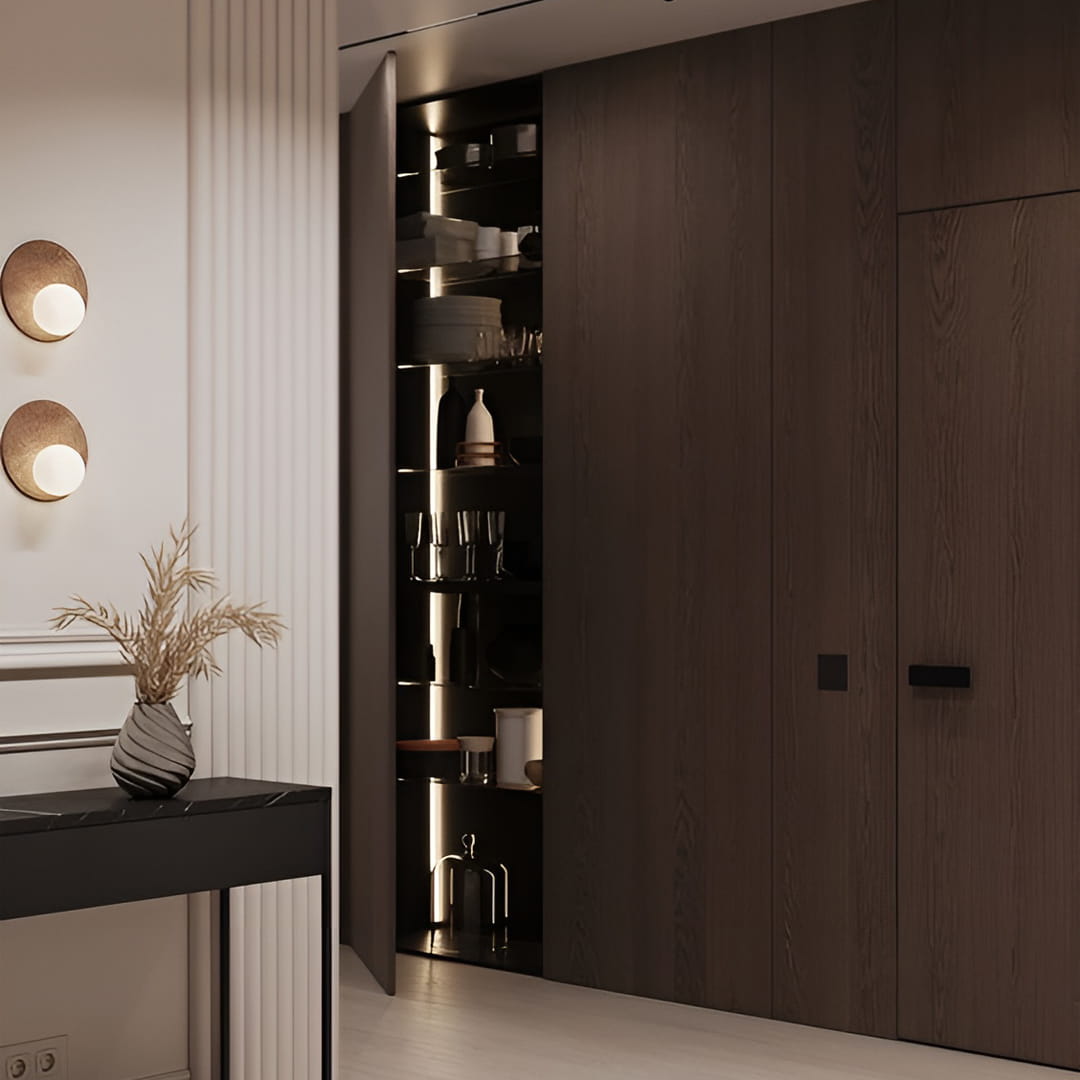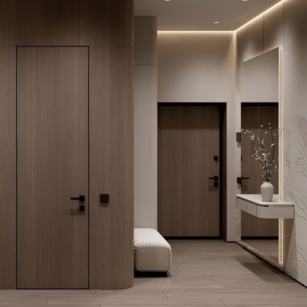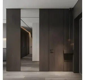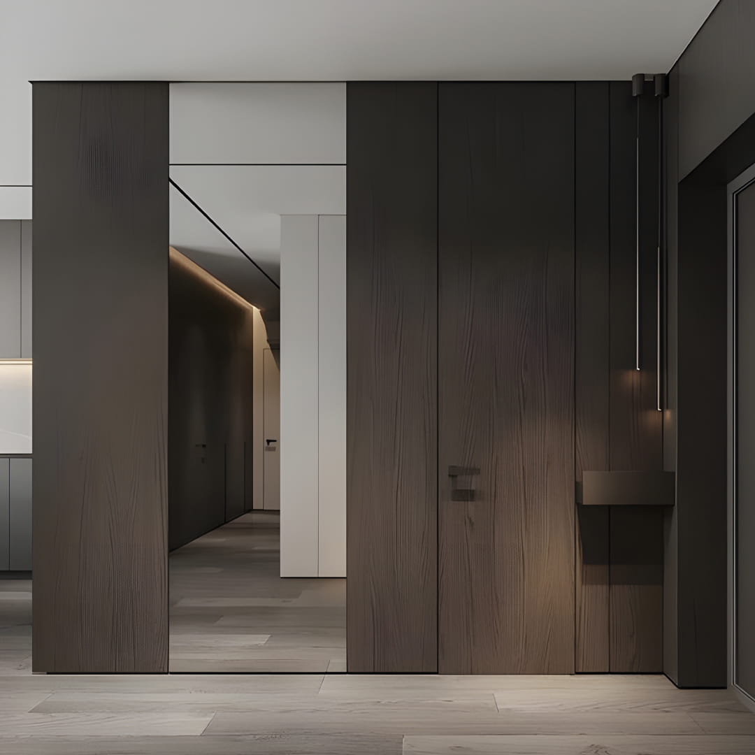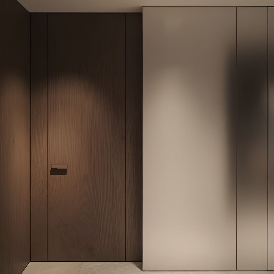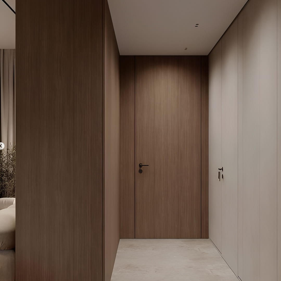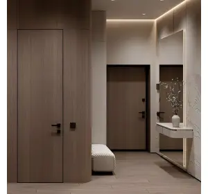 Ușile ascunse cu panouri HPL sunt cel mai adesea folosite atunci când este necesar să se obțină o suprafață rezistentă și ușor de întreținut. Plasticul HPL este un tip de acoperire decorativă care se caracterizează printr-un nivel ridicat de rezistență la uzură, rezistență la impact, rezistență la căldură, rezistență la umiditate, rezistență la soluții și reactivi chimici, rezistență la decolorare și un număr mare de decoruri. Acesta este motivul pentru care acest material este adesea utilizat la ușile din centrele medicale, spațiile publice sau birouri. Costul ușilor mascate cu acest finisaj va fi întotdeauna ridicat, dar acestea vor dura o veșnicie. Dintre decoruri puteți alege: suprafețe monocrome, sub lemn, sub marmură etc. Suprafața ușilor mascate cu HPL-plastic poate fi: lucioasă, mată, cu granulație fină sau grosieră, precum și cu textură de lemn.