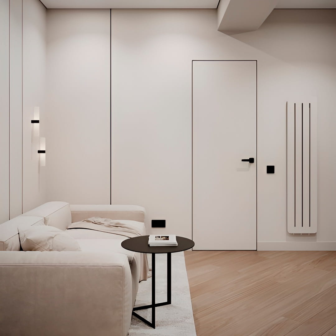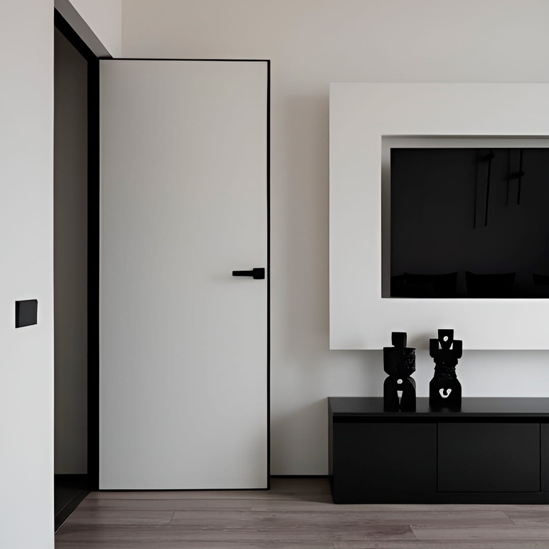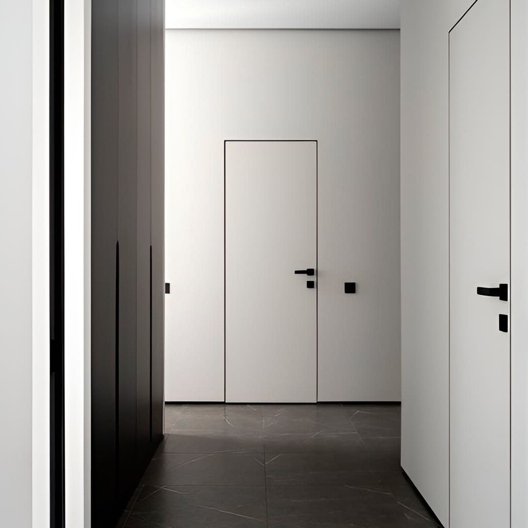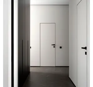 Tipul de ușă ascunsă va fi indispensabil într-un interior cu tapet foarte activ, când este necesar să se păstreze modelul pe întreaga suprafață a peretelui. Ușile invizibile pot fi cu deschidere directă (spre dvs.) și inversă (departe de dvs.). În funcție de tipul de deschidere a ușii, se schimbă designul și grosimea foii.
