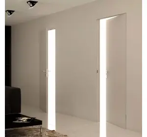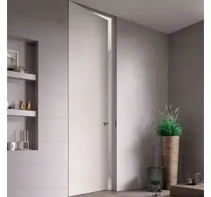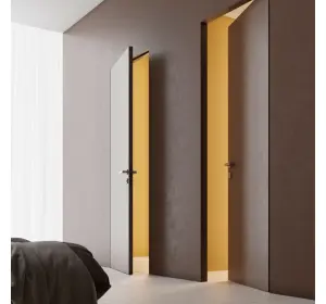 Astfel se obține efectul complet al unei uși ascunse. Finisarea cu tapet și tencuială decorativă a pânzei amorsate nu este diferită de finisarea pereților cu aceleași materiale. tipul de ușă ascunsă va fi indispensabil în interioarele cu tapet foarte activ, când este necesar să se păstreze modelul pe întreaga suprafață a peretelui. Ușile invizibile pot fi cu deschidere directă (spre dvs.) și inversă (departe de dvs.). În funcție de tipul de deschidere a ușii, se schimbă designul și grosimea foii.